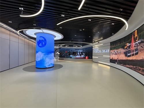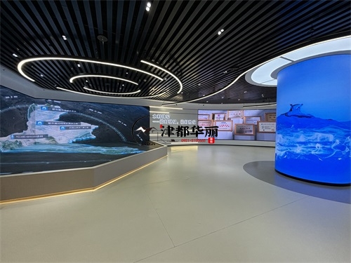 今天分享的是海原水利水电办公楼装修设计实景照片,整体而言,该办公楼空间是银川装修公司津都华丽对“专业行业办公展厅”的优质落地:以极简工业风为基底,用科技载体承载水利水电的专业叙事,在功能实用性与主题表达力之间找到平衡,既展现了行业的硬核科技感,又传递了水利工程的人文价值。材质与细节上,银川装修公司津都华丽的“实用美学”理念贯穿其中:展墙采用模块化金属嵌板,既符合水利展厅的科技质感,又满足内容更新的弹性需求;灯光系统以间接照明为主,环形灯带与嵌入式射灯的组合,既保证空间明亮度,又通过光影层次营造科技氛围;而流线型展陈台的圆角设计、地面的隐形收边工艺,则体现了津都华丽在工业风设计中“细节柔化”的巧思。